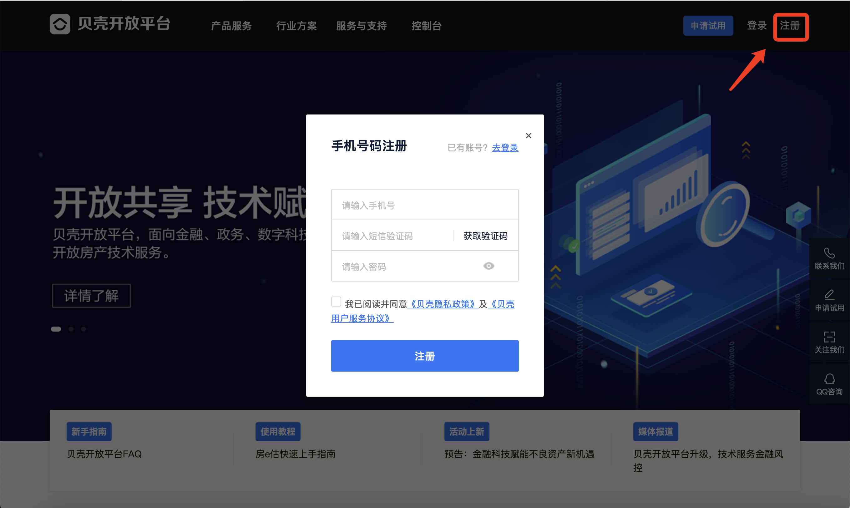 第一步:注册或登录贝壳开放平台