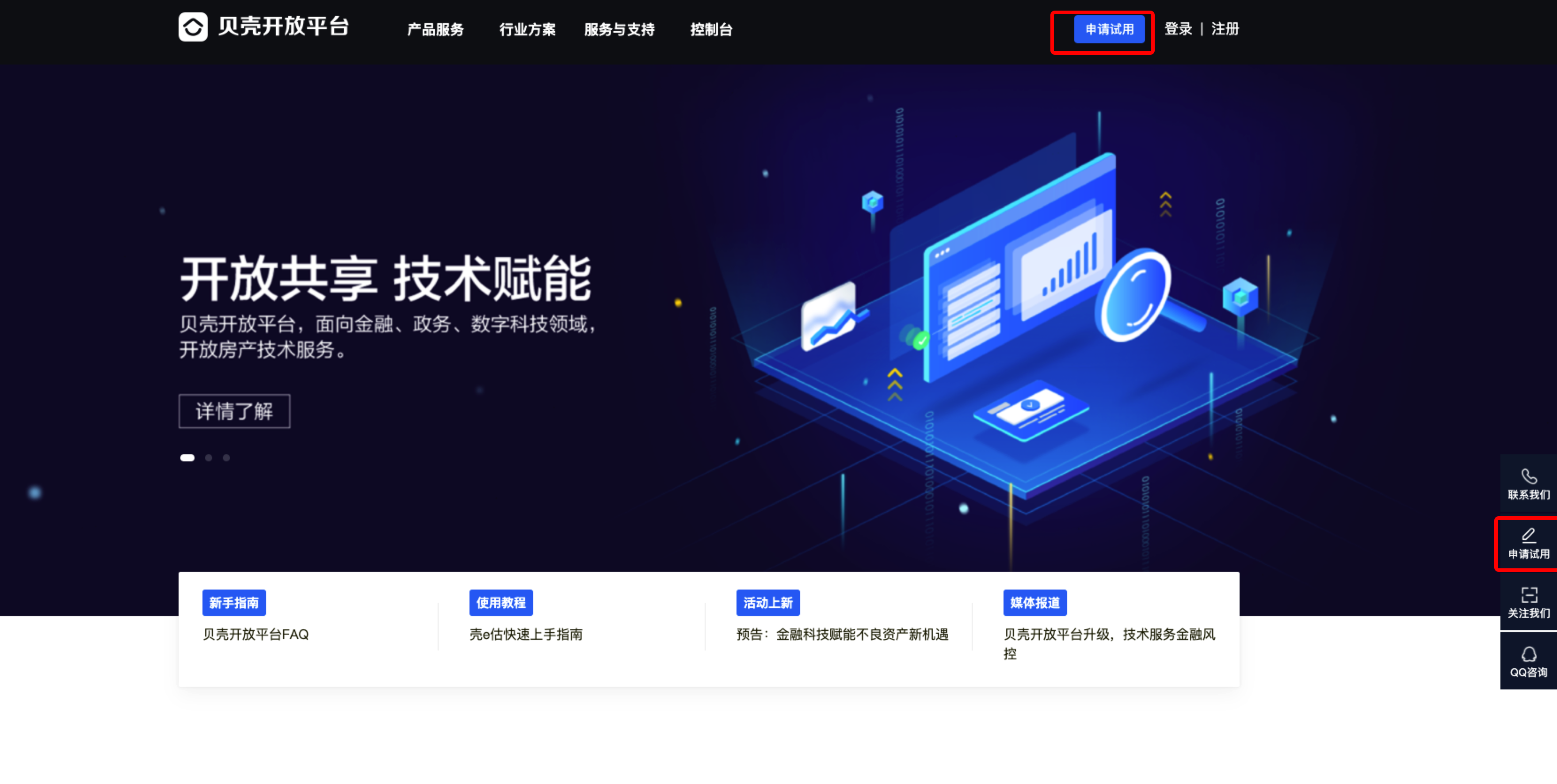 1、首页顶部导航右侧 申请试用