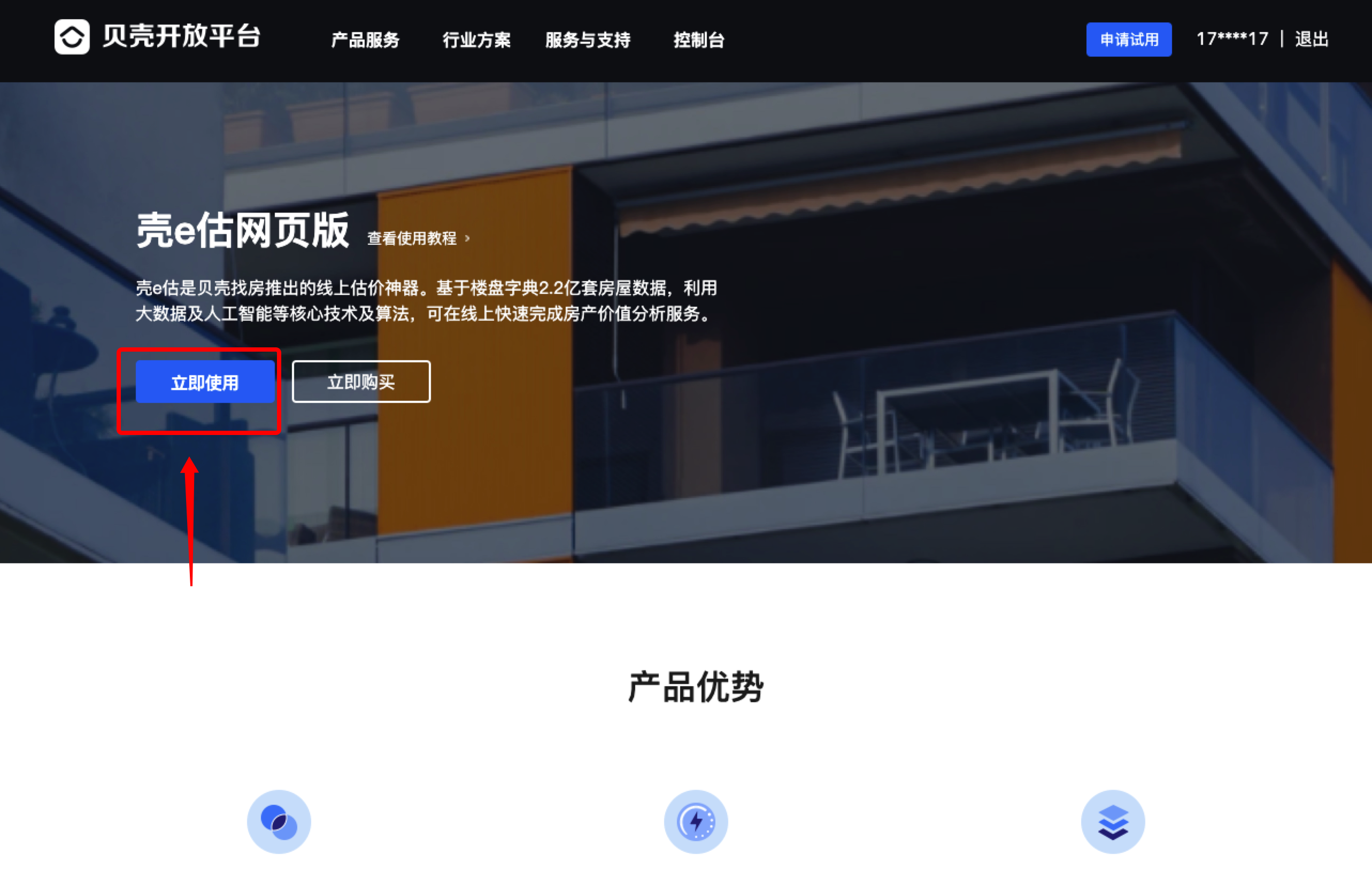 第四步:开通试用后,请确定在登录状态下,进入已开通试用的对应产品,点击页面头部立即试用按钮
